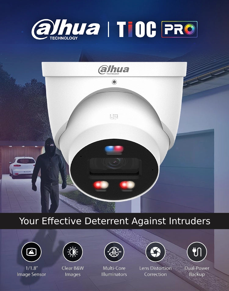Dahua IPC-HDW3849HP-AS-PV-PRO 8MP WizSense TiOC PRO Full Colour Fixed Eyeball IP Camera with Active Deterrence + 2 Way Talk