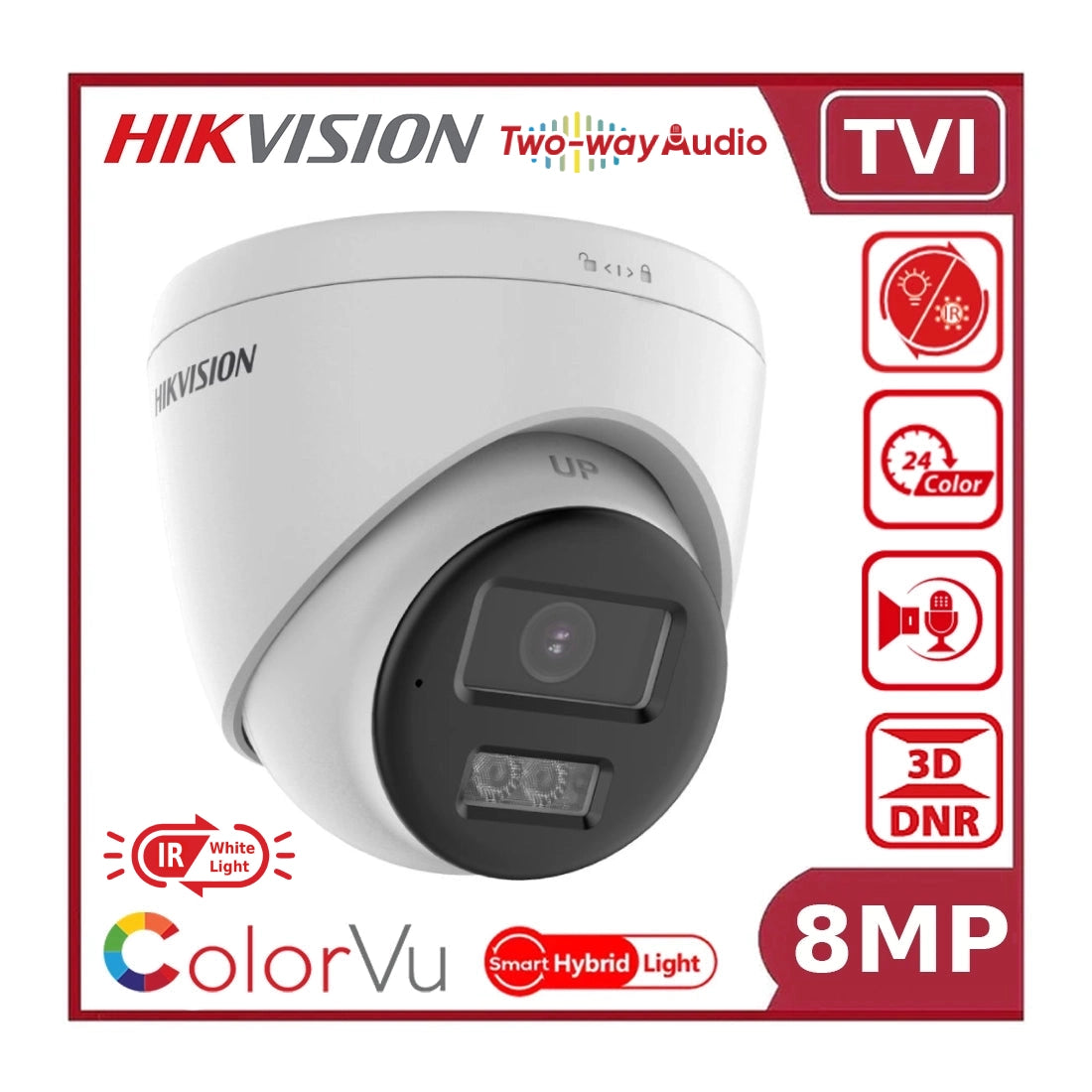 Hikvision DS-2CE78U0T-LTS 8MP Smart Hybrid Light ColorVu + IR TVI CCTV Turret Camera with Two Way Audio