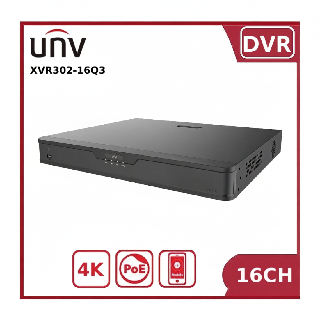 Uniview UV-XVR302-16Q3 – 16 Channel Hybrid DVR with 2 HDD Bays and 4K Output